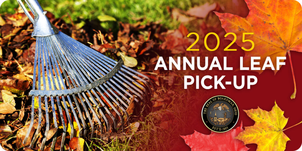 The Boardman Township Trustees will be conducting their annual Leaf Pick-Up Program beginning Monday, October 27th and ending Friday, November 21, 2025.